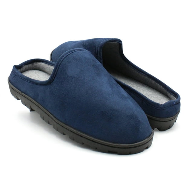 Slm Slm Men S Suede Slip On Fleece Lined Open Back Hard Bottom House Shoe Slippers Walmart Com Walmart Com