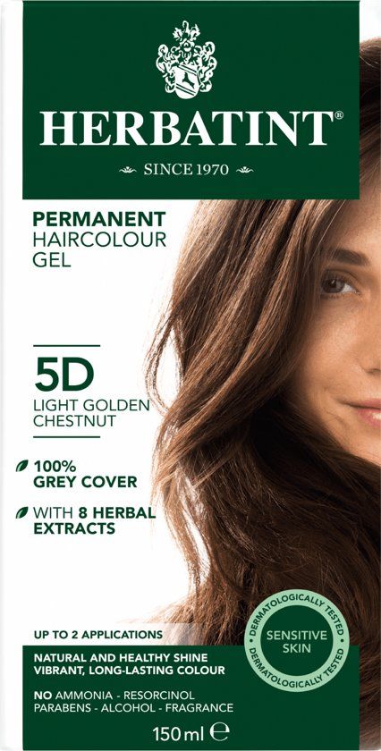 Herbatint Permanent Haircolor Gel 5D Light Golden Chestnut Description Herbatint Permanent Herbal Haircolour Gel has more conditioning lasting colour with Aloe Vera. Herbatint is the finest most natural permanent hair colouring gel free of harsh chemicals and Ammonia. It is a brighter shade of brown than standard brown hair but not as red in color as auburn hair which has.