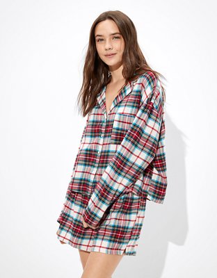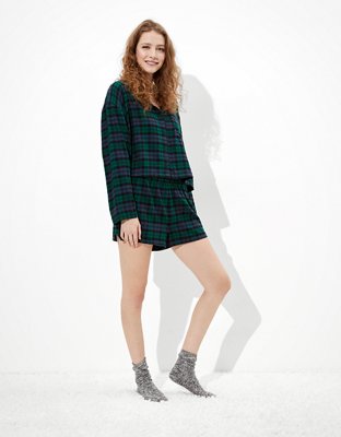 Aeo Plaid Flannel Short Pj Set