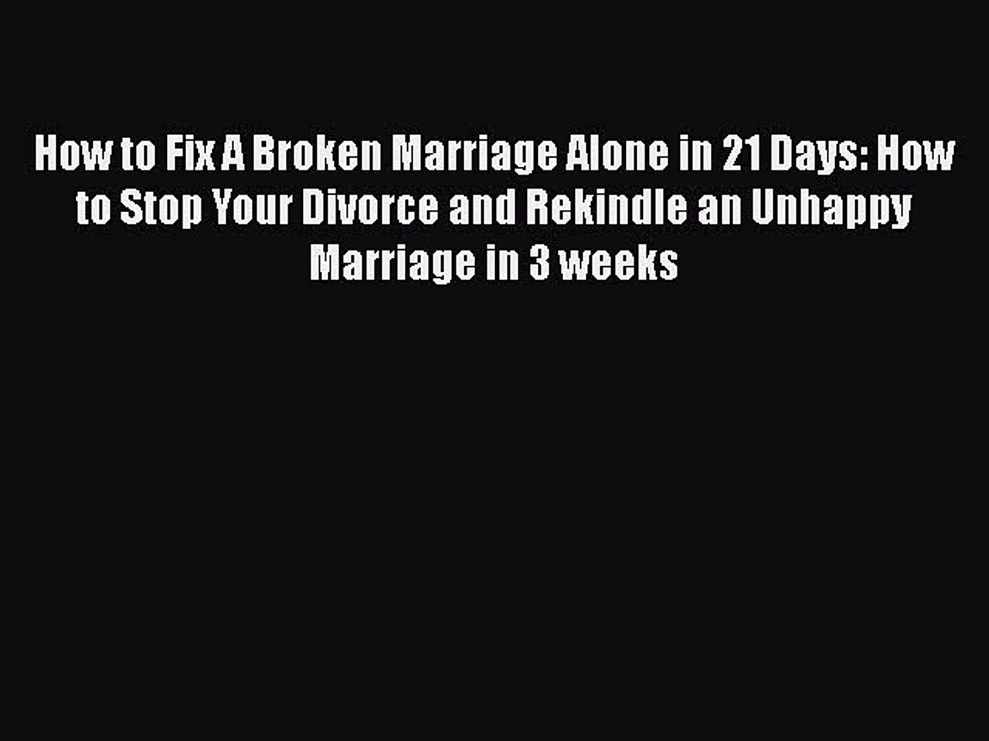Read How To Fix A Broken Marriage Alone In 21 Days How To Stop Your Divorce And Rekindle An Video Dailymotion