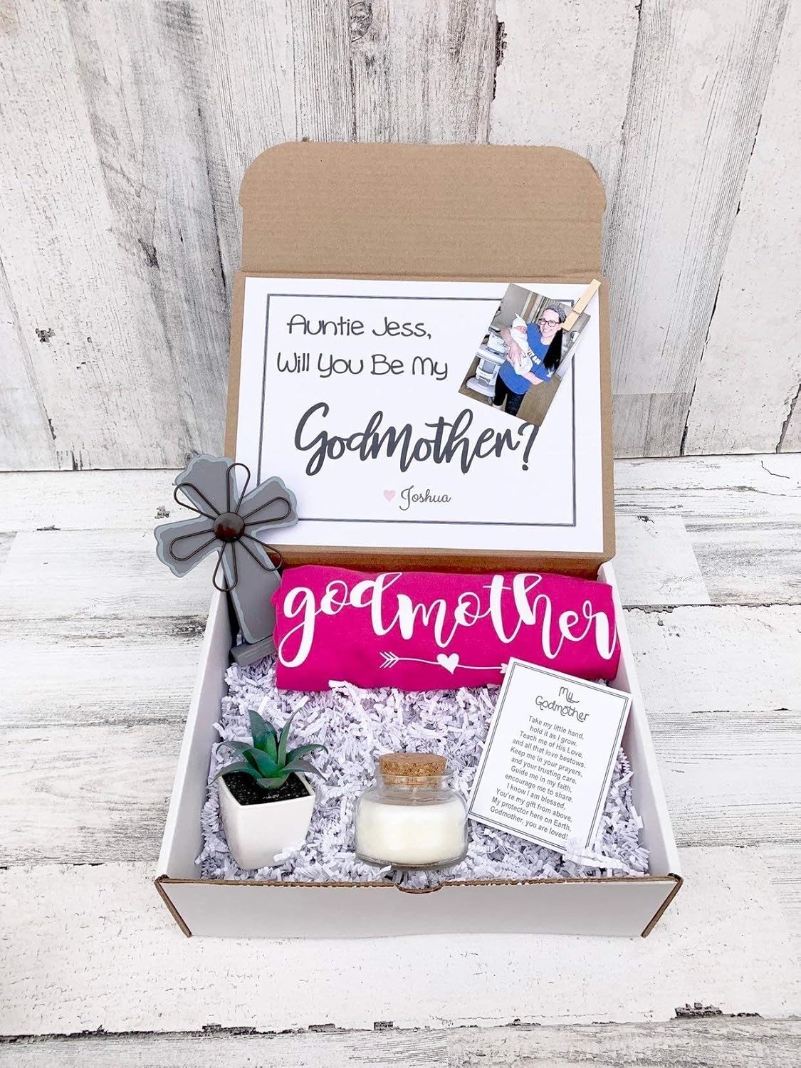 Will you be my godmother box. Itll also make a great memento for the future. Make your own shadow box with a favorite photo of your baby and a special saying like. Presented in a White Gloss Box and tied with a ribbon of your choice.